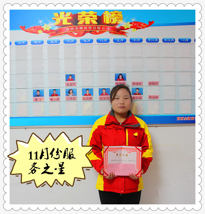 陜西金湖商貿(mào)有限公司11月星級員工
